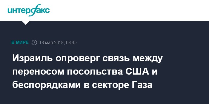 Москва. 18 мая. INTERFAX.RU - Никакой связи между переносом американского посольства из Тель-Авива в Иерусалим и беспорядками в секторе Газа нет, вся ответственность за жертвы лежит на палестинском исламистском движении ХАМАС, заявил израильский министр по делам Иерусалима и национального наследия Зеэв Элькин.