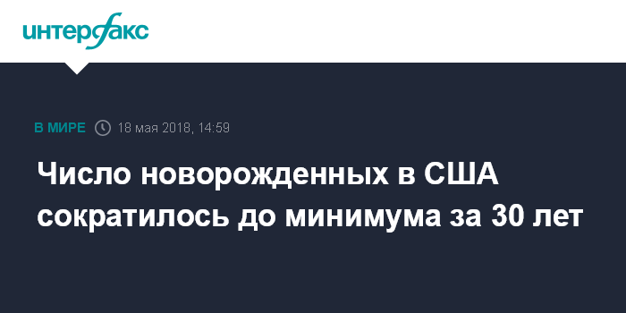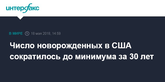 Москва. 18 мая. INTERFAX.RU - Коэффициент рождаемости в США второй год находится на рекордно низком уровне, число новорожденных в прошлом году сократилось до минимума за 30 лет, пишет The Wall Street Journal.