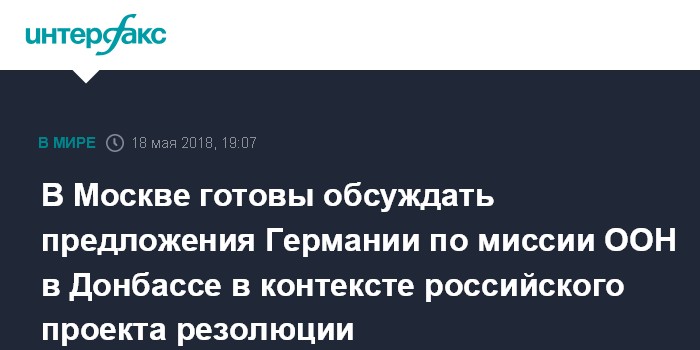 В Москве готовы обсуждать предложения Германии по миссии ООН в Донбассе в контексте российского проекта резолюции
