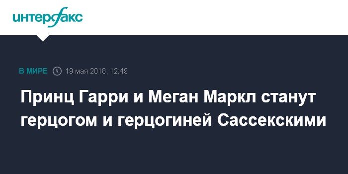 Таким образом, Гарри будет теперь официально именоваться его королевское высочество герцог Сассекский, его будущая жена Меган Маркл после свадьбы станет ее королевским высочеством герцогиней Сассекской.