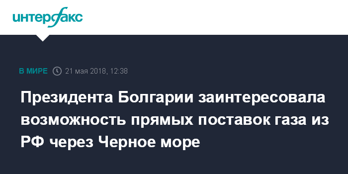 Москва. 21 мая. INTERFAX.RU - Президент Болгарии Румен Радев выразил надежду на осуществление прямых поставок российского газа через Черное море.