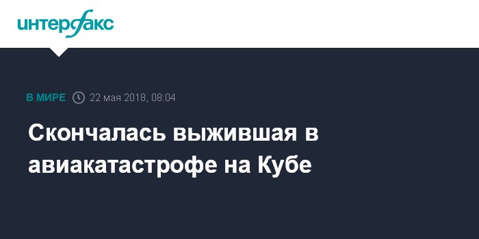 Москва. 22 мая. INTERFAX.RU - Выжившая в авиакатастрофе в минувшую пятницу Гретель Ландроу умерла в понедельник вечером в больнице "Генерал Калисто Гарсия" в Гаване, сообщила газета Granma.