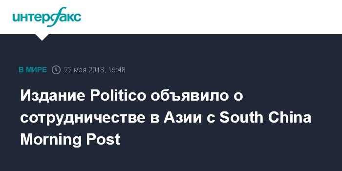 Москва. 22 мая. INTERFAX.RU - Американское издание Politico во вторник объявило о партнерстве с гонконгской газетой South China Morning Post, старейшей англоязычной газетой региона, которую в 2015 году приобрела компания Alibaba миллиардера Джека Ма.