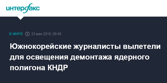 Москва. 23 мая. INTERFAX.RU - Группа южнокорейских журналистов, которым изначально было отказано в визе в КНДР, в среду все же вылетела на правительственном самолете в северокорейский прибрежный город Вонсан, чтобы затем отправиться из него на закрытие ядерного полигона Пунгери, в среду агентство "Ренхап".