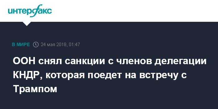 Москва. 24 мая. INTERFAX.RU - В среду комитет ООН предоставил освобождение от санкций всем членам северокорейской официальной делегации, которая поедет в Сингапур на встречу с президентом США, сообщает информагентство Associated Press.