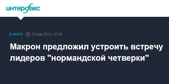 Москва. 24 мая. INTERFAX.RU - Президент Франции Эммануэль Макрон заявил, что необходимо приложить усилия для проведения в ближайшие недели встречи лидеров стран "нормандской четверки" по урегулированию ситуации в Донбассе.