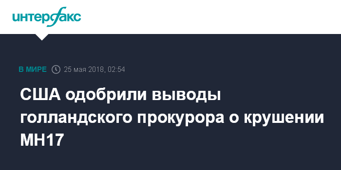Москва. 25 мая. INTERFAX.RU - Госдепартамент США призвал Россию прояснить свою роль в крушении в 2014 году "Боинга-777" авиакомпании Malaysia Airlines, выполнявший рейс МН17 "Амстердам - Куала-Лумпур".