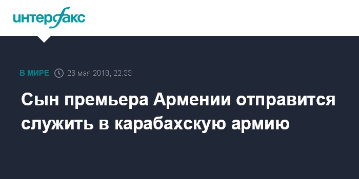 Москва. 26 мая. INTERFAX.RU - Сын премьер-министра Армении Никола Пашиняна Ашот Пашинян отправится на службу в армию в ходе летнего призыва.