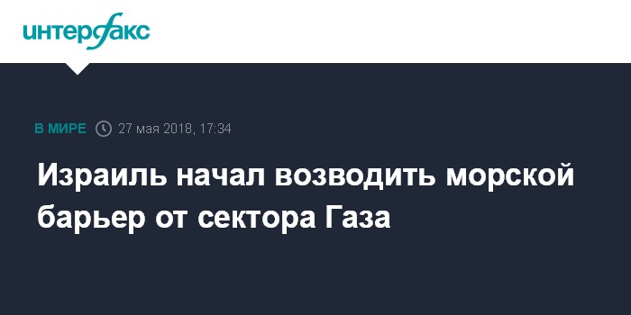 Москва. 27 мая. INTERFAX.RU - Израиль приступил к строительству морского заграждения вдоль границы с сектором Газа, заявил в воскресенье министр обороны страны Авигдор Либерман.