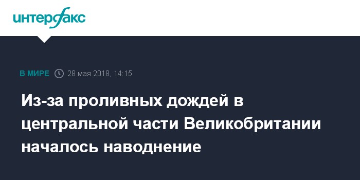 Москва. 28 мая. INTERFAX.RU - Сильные ливни привели к наводнению в центральных районах Великобритании, сообщают в понедельник местные СМИ.