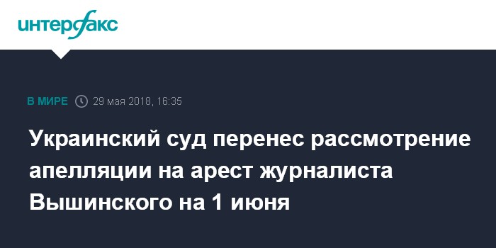 Украинский суд перенес рассмотрение апелляции на арест журналиста Вышинского на 1 июня