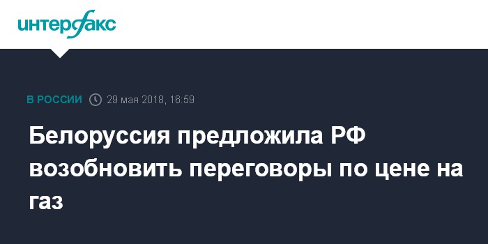 Москва. 29 мая. INTERFAX.RU - Белоруссия ждет возобновления переговоров по цене на газ после 2019 года с новым правительством России, сообщил белорусский вице-премьер Владимир Семашко журналистам во вторник в Минске.
