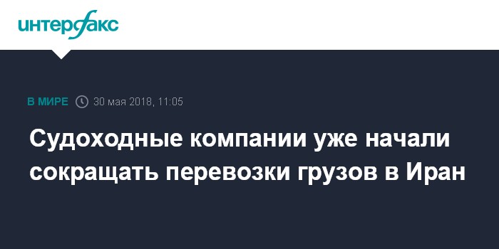 Москва. 30 мая. INTERFAX.RU - Глобальные судоходные компании уже начали отказываться от перевозок грузов в Иран, хотя до вступления в силу санкций США остается еще несколько месяцев, пишет The Wall Street Journal.