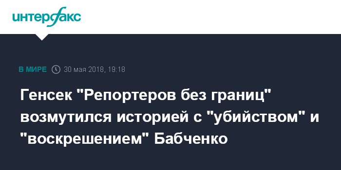 Генсек "Репортеров без границ" возмутился историей с "убийством" и "воскрешением" Бабченко