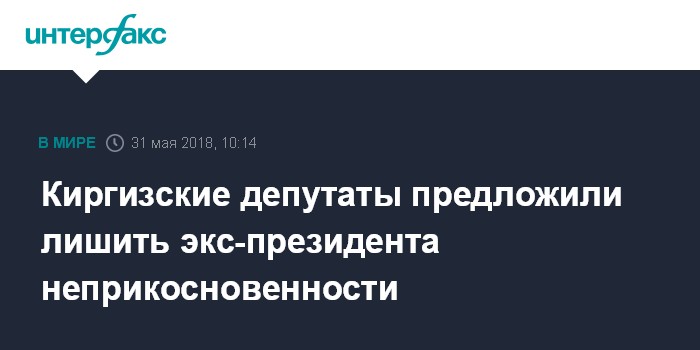 Москва. 31 мая. INTERFAX.RU - Депутаты парламента Киргизии вынесли на общественное обсуждение проект закона, позволяющего привлечь экс-президента к уголовной ответственности.