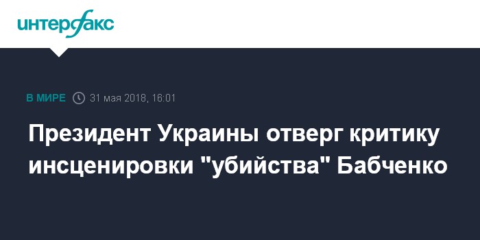 Москва. 31 мая. INTERFAX.RU - Президент Украины Петр Порошенко ответил критикам спецоперации украинских спецслужб по инсценировке "убийства" в Киеве российского журналиста Аркадия Бабченко.