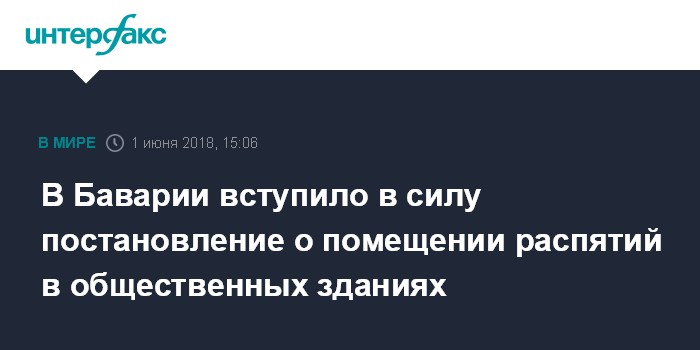 Москва. 1 июня. INTERFAX.RU - Постановление о помещении изображения христианского креста у входа в большинство общественных зданий вступило в пятницу в германской федеральной земле Бавария, сообщают немецкие СМИ.