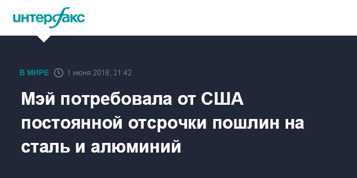 Мэй потребовала от США постоянной отсрочки пошлин на сталь и алюминий