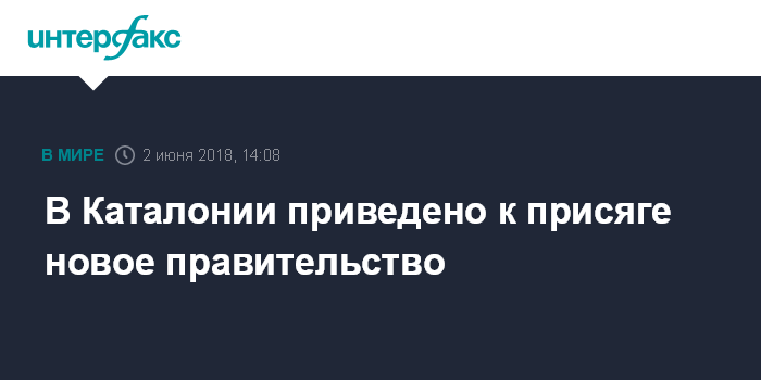 Москва. 2 июня. INTERFAX.RU - Новое правительство испанского автономного сообщества Каталония во главе с Кимом Торрой приведено в субботу к присяге, сообщает телевидение Испании.