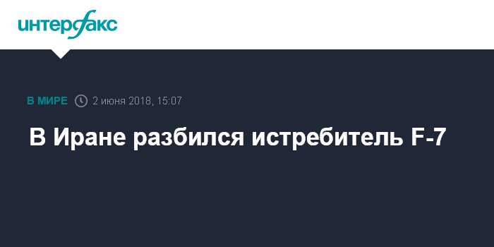 Москва. 2 июня. INTERFAX.RU - Истребитель ВВС Ирана F-7 разбился в субботу в провинции Исфахан в центральной части страны, сообщает иранское телерадиовещание.