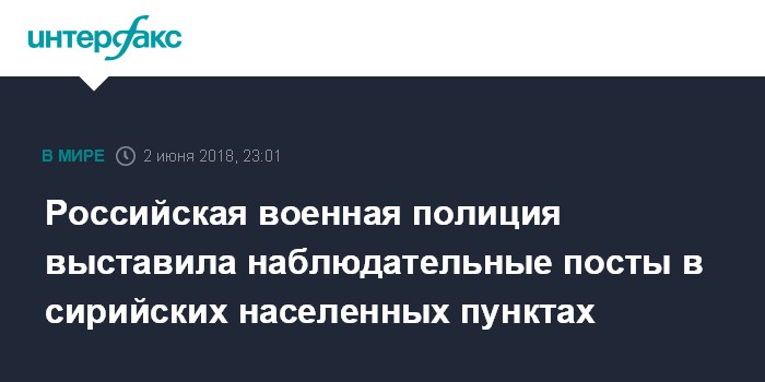 "Для пресечения провокаций, контроля переселения беженцев и оказания помощи мирным жителям подразделениями российской военной полиции выставлены наблюдательные посты в населенных пунктах Эр-Растан, Кафер-Лаха, Телль-Биса, Заафарана, Харет-Тукман и Касири-Карабеси", - отметил Цыганков.
