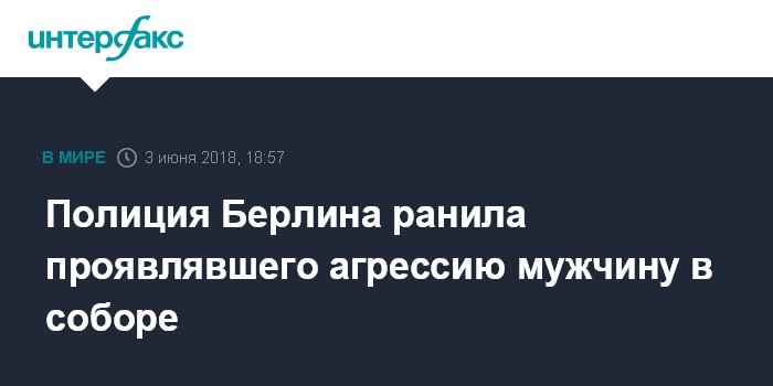 Москва. 3 июня. INTERFAX.RU - Полиция в воскресенье выстрелила в ногу мужчины, который проявлял агрессию в кафедральном соборе в Берлине.