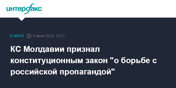 Москва. 4 июня. INTERFAX.RU - Конституционный суд Молдавии признал соответствующим Конституции так называемый закон "о борьбе с российской пропагандой", принятый парламентом страны в прошлом году.