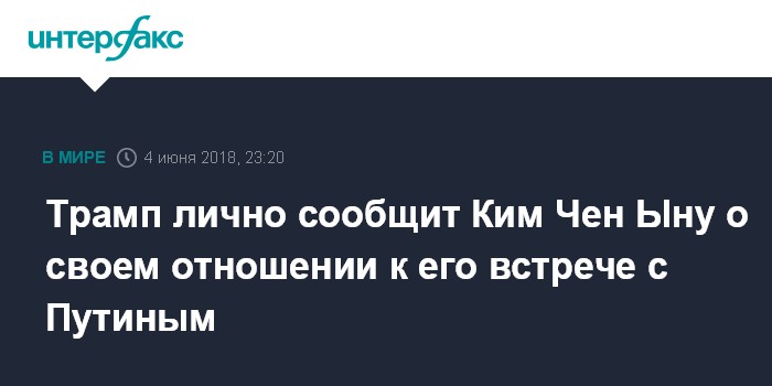 Трамп лично сообщит Ким Чен Ыну о своем отношении к его встрече с Путиным