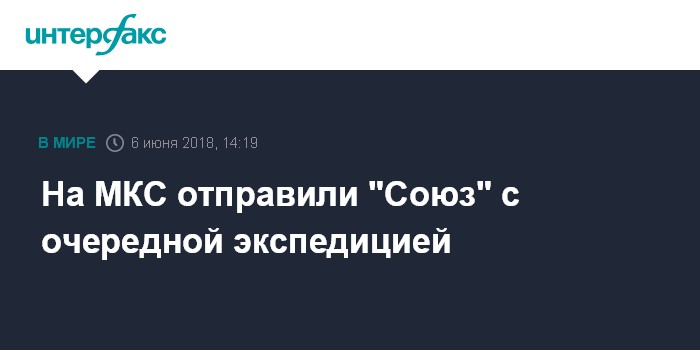 Москва. 6 июня. INTERFAX.RU - Очередная экспедиция отправилась на Международную космическую станцию на российском корабле "Союз" с "Гагаринского старта" Байконура.