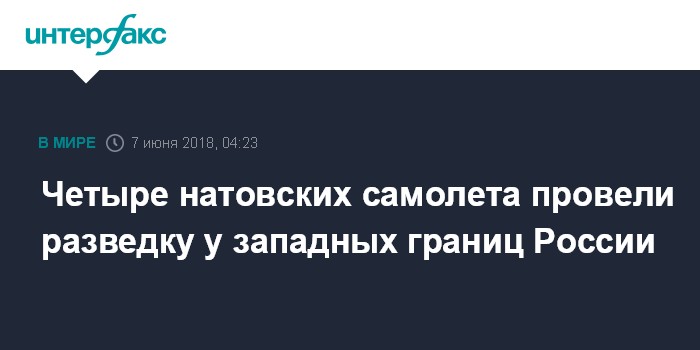 Стратегический разведывательный беспилотник ВВС США RQ-4B Global Hawk с бортовым номером 10-2043, вылетевший с авиабазы Сигонелла на итальянском острове Сицилия, около 12 часов вел разведку у западных границ России, в том числе вблизи Калининградской, Псковской и Ленинградской областей. В воздушном пространстве Польши у российских рубежей многочасовые полеты совершали два самолета AWACS - ВВС США и командования НАТО. Кроме того, к югу от Калининградской области во вторник выполнял полет стратегический разведывательный самолета ВВС США RC-135V.