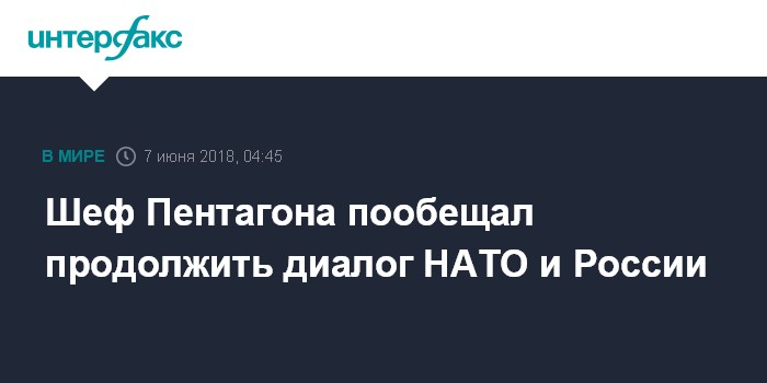 Москва. 7 июня. INTERFAX.RU - НАТО не откажется от диалога с Россией и попыток улучшения отношений с ней, заявил министр обороны США Джеймс Мэттис журналистам.