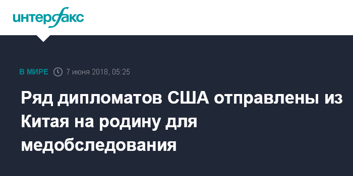 Ряд дипломатов США отправлены из Китая на родину для медобследования