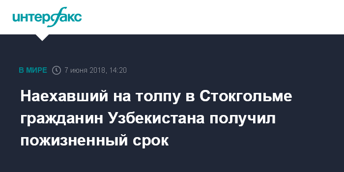 Наехавший на толпу в Стокгольме гражданин Узбекистана получил пожизненный срок
