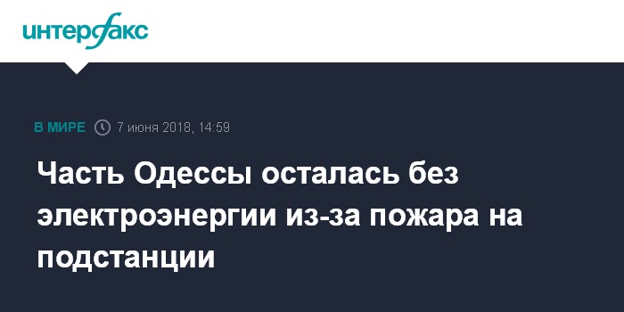 Москва. 7 июня. INTERFAX.RU - Пожар на электроподстанции оставил без электроэнергии 75% абонентов Суворовского района Одессы, сообщила пресс-служба горсовета.