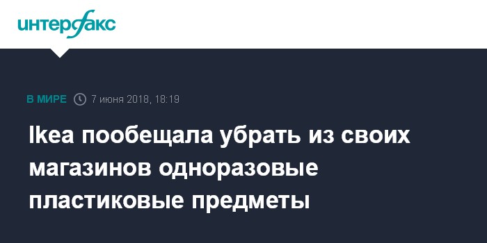 Москва. 7 июня. INTERFAX.RU - Шведская компания Ikea планирует к 2020 году полностью убрать из своих магазинов одноразовые предметы из пластика на фоне растущей обеспокоенности в связи с загрязнением окружающей среды, сообщает The Guardian.