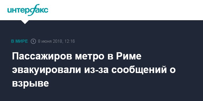 Москва. 8 июня. INTERFAX.RU - В римском метро в четверг утром эвакуировали порядка 1,5 тысячи человек из-за сообщений о взрыве, информация оказалась ложной, сообщают итальянские СМИ.