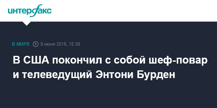 Как отмечает CNN, сообщения о смерти Бурдена появились через несколько дней после самоубийства дизайнера Кейт Спейд. Согласно обнародованным накануне данным американского правительства, с 1999 года число суицидов в США выросло на 30%.