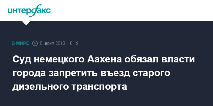В пятницу административный суд Аахена обязал городские власти ограничить въезд в город для дизельного транспорта к январю 2019 года, чтобы привести качество воздуха в соответствие с нормами Евросоюза.