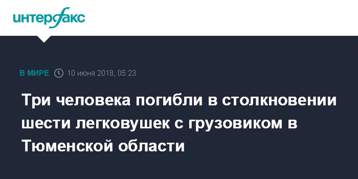 Москва. 10 июня. INTERFAX.RU - Грузовик в ночь с субботы на воскресенье совершил наезд на шесть легковых автомобилей на 184 км федеральной трассы Тюмень-Ханты-Мансийск, есть погибшие и пострадавшие, сообщили агентству "Интерфакс" в пресс-службе регионального главка МЧС.