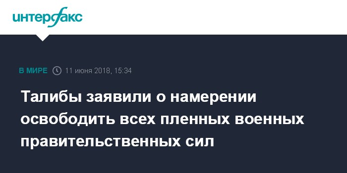 Москва. 11 июня. INTERFAX.RU - Радикальное движение "Талибан" (запрещено в России) заявило, что в праздничные дни, связанные с завершением месяца поста Рамазан, освободят всех находящихся у них в плену военнослужащих правительственных сил, сообщает Ariana News со ссылкой на представителя движения Забиуллу Муджахида.