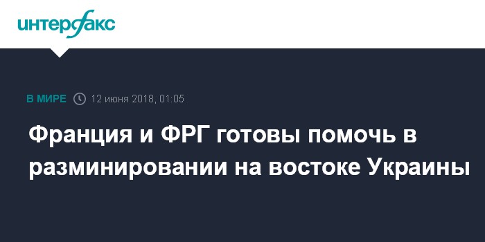 Москва. 12 июня. INTERFAX.RU - Власти Франции и Германии готовы оказать помощь в разминировании в зоне конфликта на востоке Украины, заявил глава французского МИД Жан-Ив Ле Дриан.