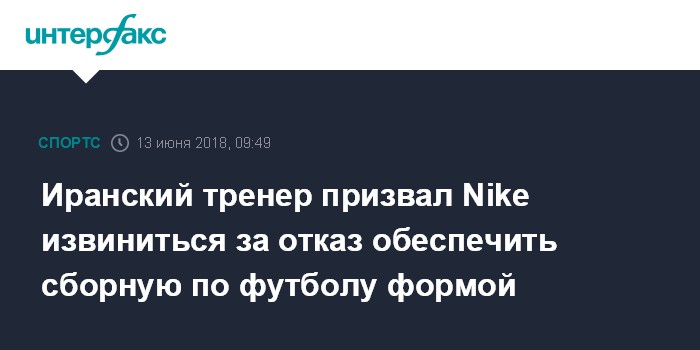 Москва. 13 июня. INTERFAX.RU - Главный тренер сборной Ирана по футболу Карлуш Кейруш призвал американскую компанию Nike принести извинения его команде за отказ обеспечивать иранских игроков экипировкой из-за введенных Вашингтоном санкций.