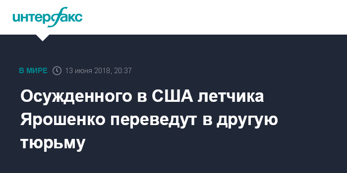 Осужденного в США летчика Ярошенко переведут в другую тюрьму
