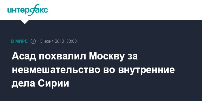 Асад похвалил Москву за невмешательство во внутренние дела Сирии
