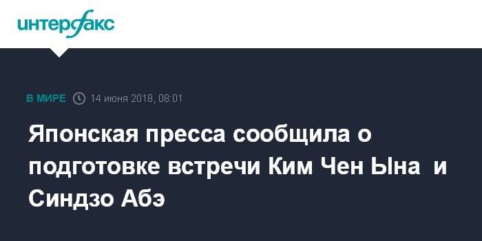Москва. 14 июня. INTERFAX.RU - Лидер КНДР Ким Чен Ын заявил, что согласен встретиться с премьер-министром Японии Синдзо Абэ, пишет японская газета Sankei Shimbun.