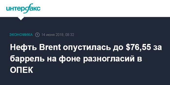 Москва. 14 июня. INTERFAX.RU - Нефть в четверг возобновила снижение из-за разногласий среди участников Организации стран-экспортеров нефти (ОПЕК) по вопросу о постепенном восстановлении объемов добычи.