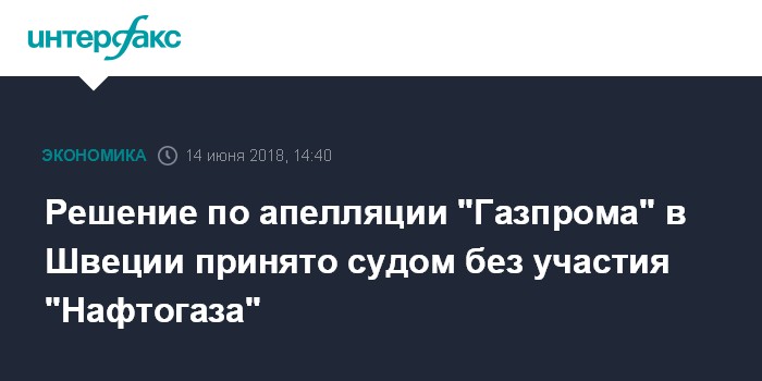 Решение по апелляции "Газпрома" в Швеции принято судом без участия "Нафтогаза"