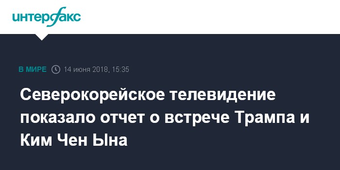 Москва. 14 июня. INTERFAX.RU - Центральное телевидение КНДР в четверг показало 40-минутную передачу, посвященную переговорам северокорейского лидера Ким Чен Ына с президентом США Дональдом Трампом в Сингапуре, состоявшимся 12 июня.