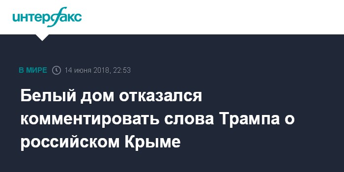 Москва. 14 июня. INTERFAX.RU - Представитель Белого дома Сара Сандерс заявила в четверг, что не знает, говорил ли президент США Дональд Трамп лидерам G7 на саммите в Канаде, что считает Крым российской территорией.