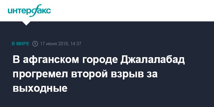 Москва. 17 июня. INTERFAX.RU - Взрыв прогремел в воскресенье в первом округе административного центра провинции Нангархар на востоке Афганистана города Джалалабад, по предварительным данным, погибли и ранены не менее 10 человек, сообщили местные СМИ со ссылкой на пресс-секретаря губернатора провинции Атауллу Хугьяни.